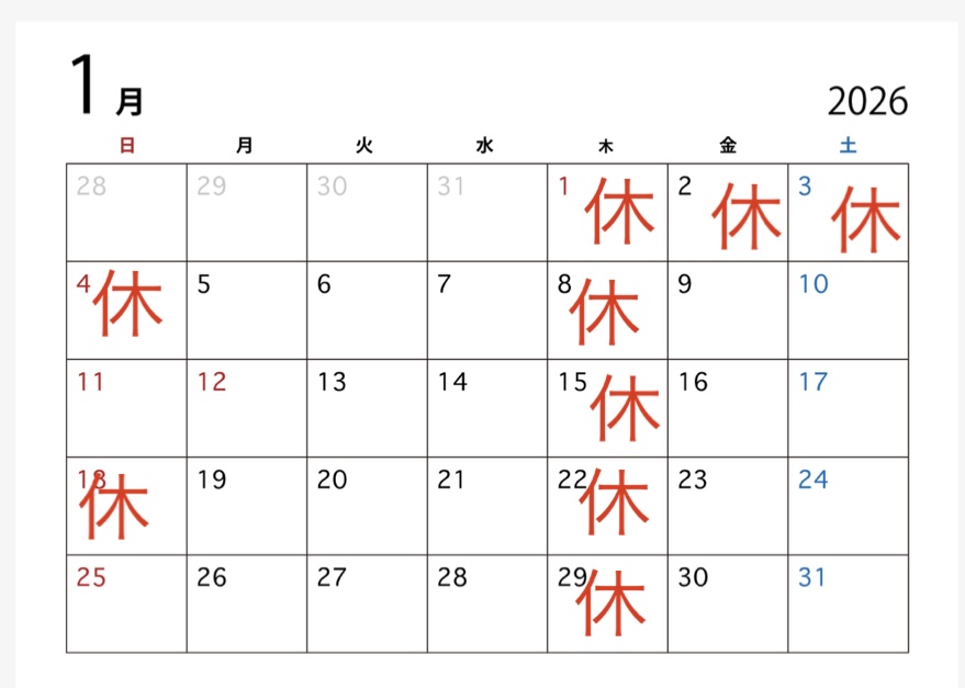 1月営業日のお知らせ