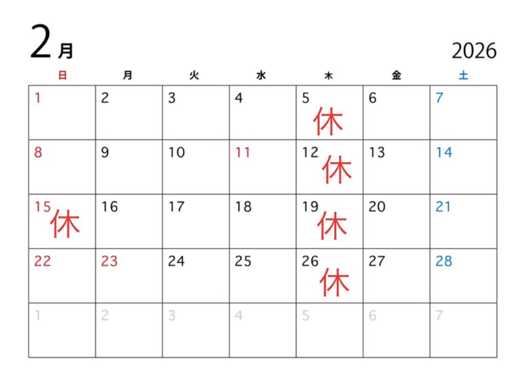 2月営業日のお知らせ